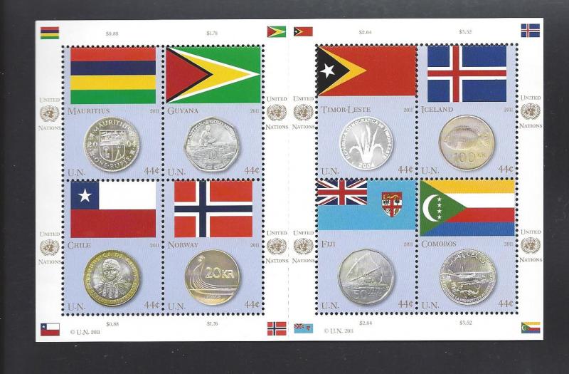 United Nations, 1022, Flags/Coins 2011 Sheet(8),**MNH**