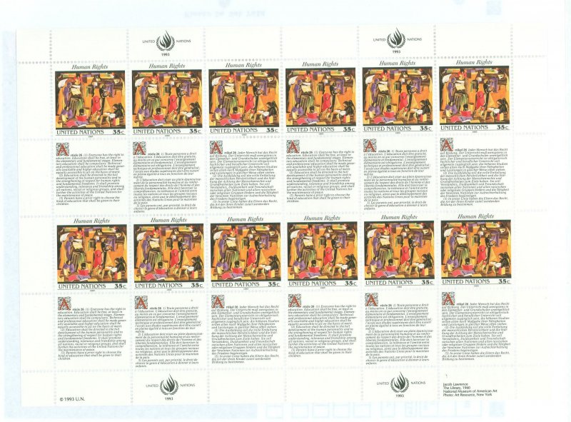 1993 35c Human Rights issue, full sheet of 12 stampswith tabs,OG APS Stamp Id: 501739409 APS Seller Id: 523632 Hinge Type: NH