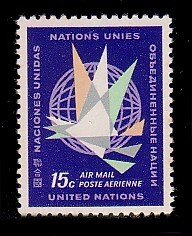 United Nations, Scott #C11, 1964 "Flight Across the Globe" Air Post issue in Mint Never Hinged condition.Scott 2024 Catalogue Value $0.30