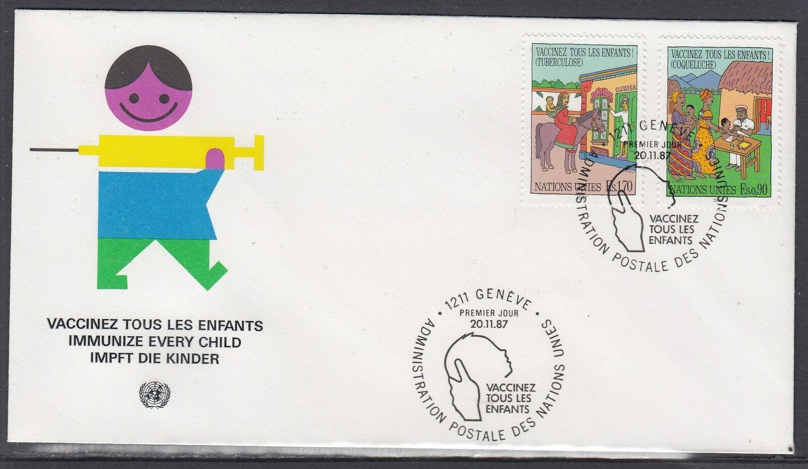 United Nations Geneva Scott 160-1 Combo FDC - Children Immunization