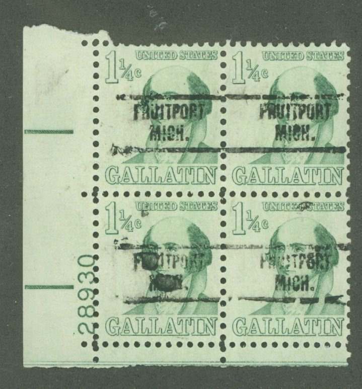 local precancel, not listed in Durland, original full gum, block of 4, PN 28930 untagged (Fruitport, MI is a village of less tha 1200 people) APS Stamp Id: 501630172 APS Seller Id: 586210 Hinge Type: NH