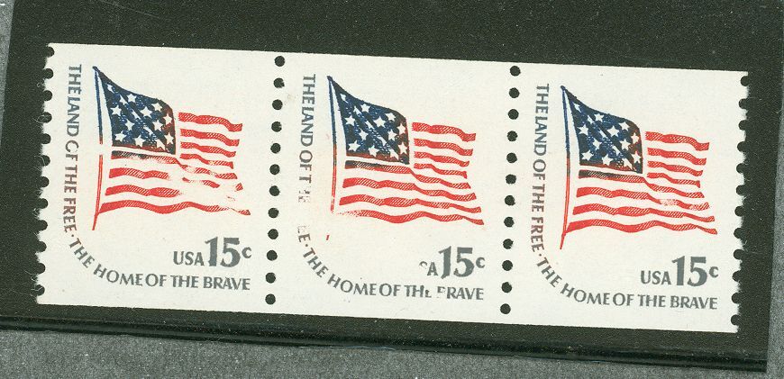 Fort McHenry flag printing error through all 3 stamps, color skips. APS Stamp Id: 501724447 APS Seller Id: 615244 Hinge Type: NH