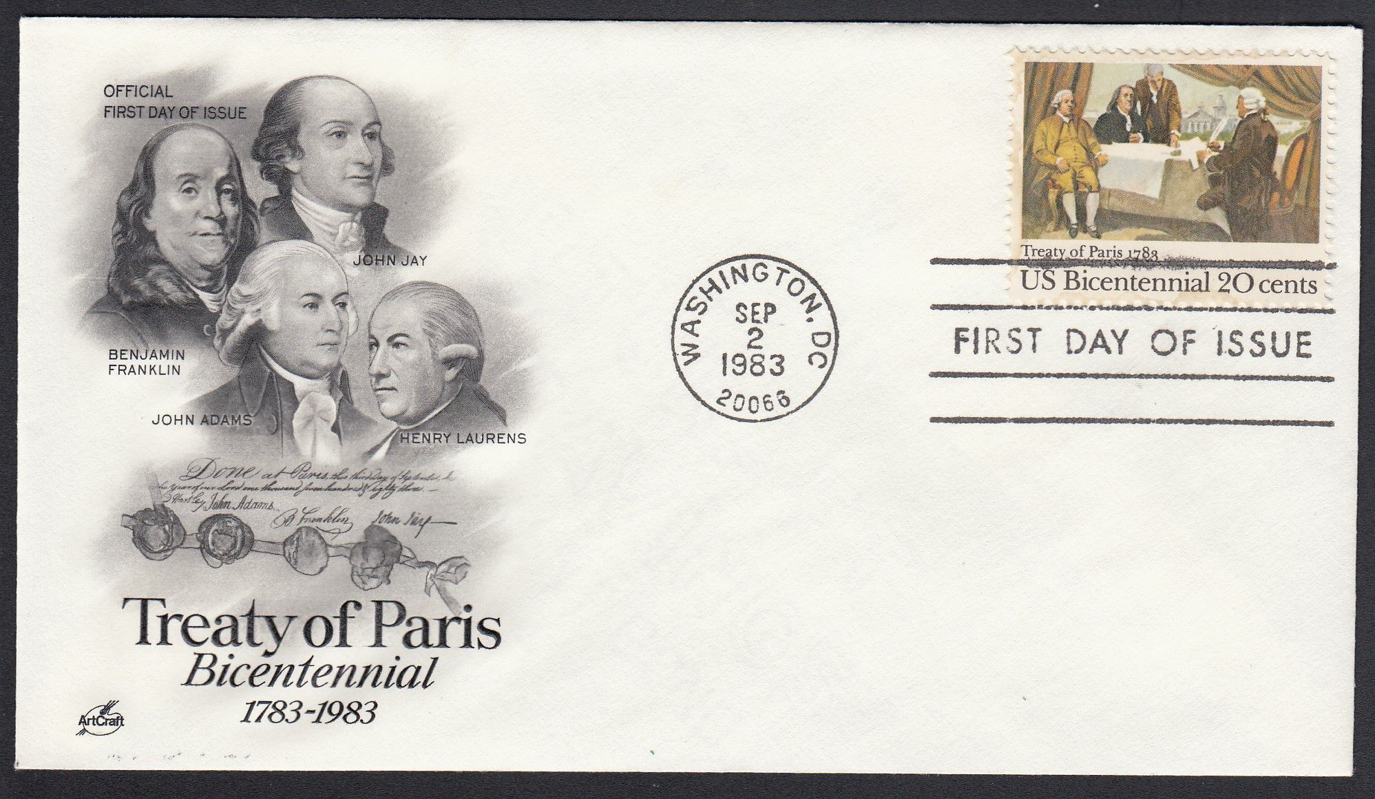 United States, Scott #2052, 1983 Signing of the Treaty of Paris - John Adams, B. Franklin, John Jay, David Hartley issue First Day Cover.Scott 2025 Catalogue Value $1.00