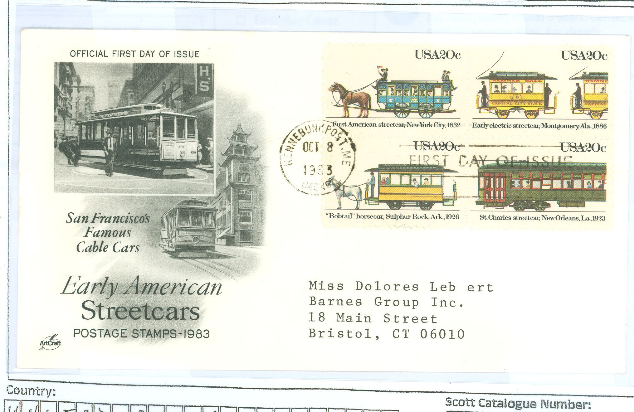 Early american streetcars, block of 4, artcraft cachet APS Stamp Id: 501441453 APS Seller Id: 580678 Hinge Type: Not Specified