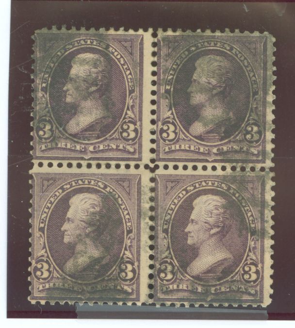 1895 Jackson. Purple. Block of 4. Thin and pencil note. Perf 12. APS Stamp Id: 501957113 APS Seller Id: 580678 Hinge Type: Not Specified