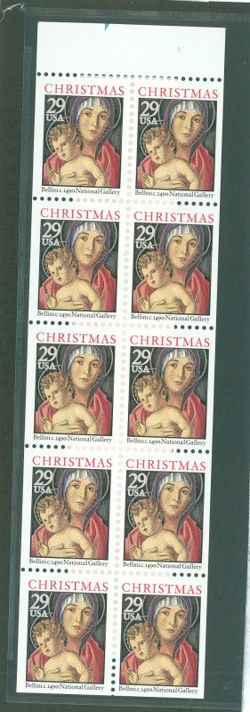 1992 29c "Bellini Madonna", booklet pane (10), unfolded, never folded, unbound, Pl #1 w tab color spike. (Furman assigns sig. premium for nf panes w tab marks). APS Stamp Id: 501389761 APS Seller Id: 738268 Hinge ... Read More