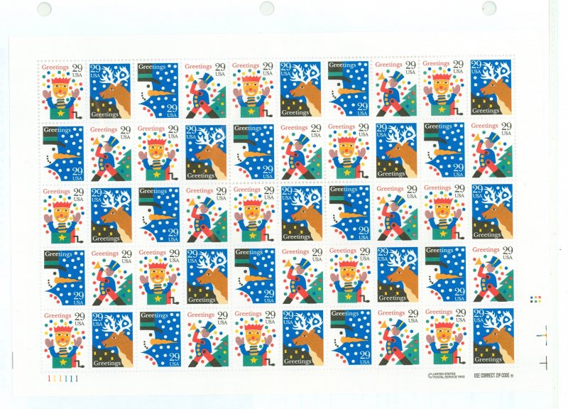 1993 Christmas; full sheet of 50 29c stamps in four designs APS Stamp Id: 501701690 APS Seller Id: 523632 Hinge Type: NH