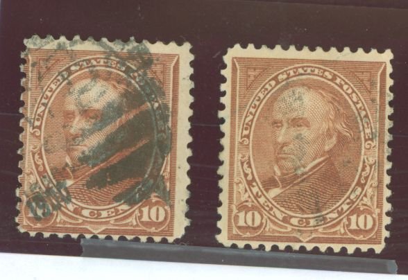1898 Webster perf 12, brown type I/orange brown type 2, both have pencil notesAPS Stamp Id: 501656551