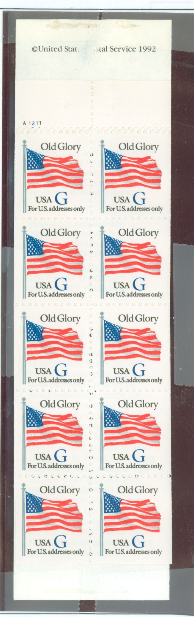 Blue G. One booklet pane of 10 with booklet cover. Normal fold at one perf rowAPS Stamp Id: 502062651