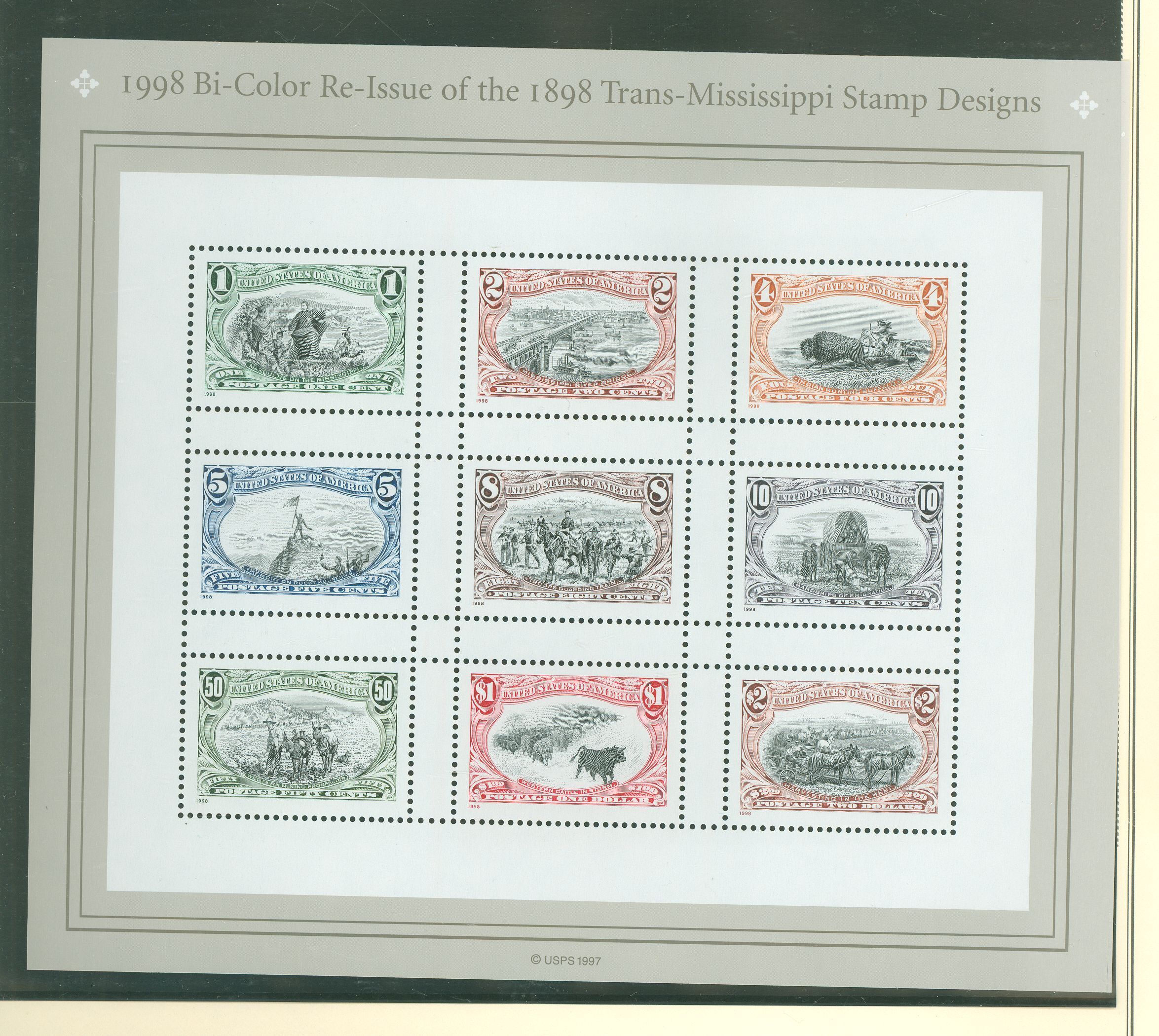 2021 1898 Trans-Missippi Re-issue full pane of 9 APS Stamp Id: 501550966 APS Seller Id: 628489 Hinge Type: NH