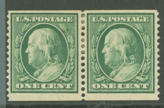 1909 1c Franklin coil pair, perf 12; both stamps hinged APS Stamp Id: 501949894 APS Seller Id: 788564 Hinge Type: HR