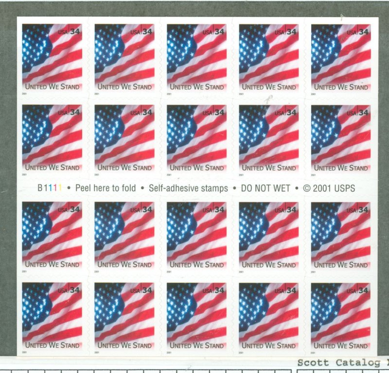 34c United We Stand book of 20 "B" number SA B111APS Stamp Id: 501806709