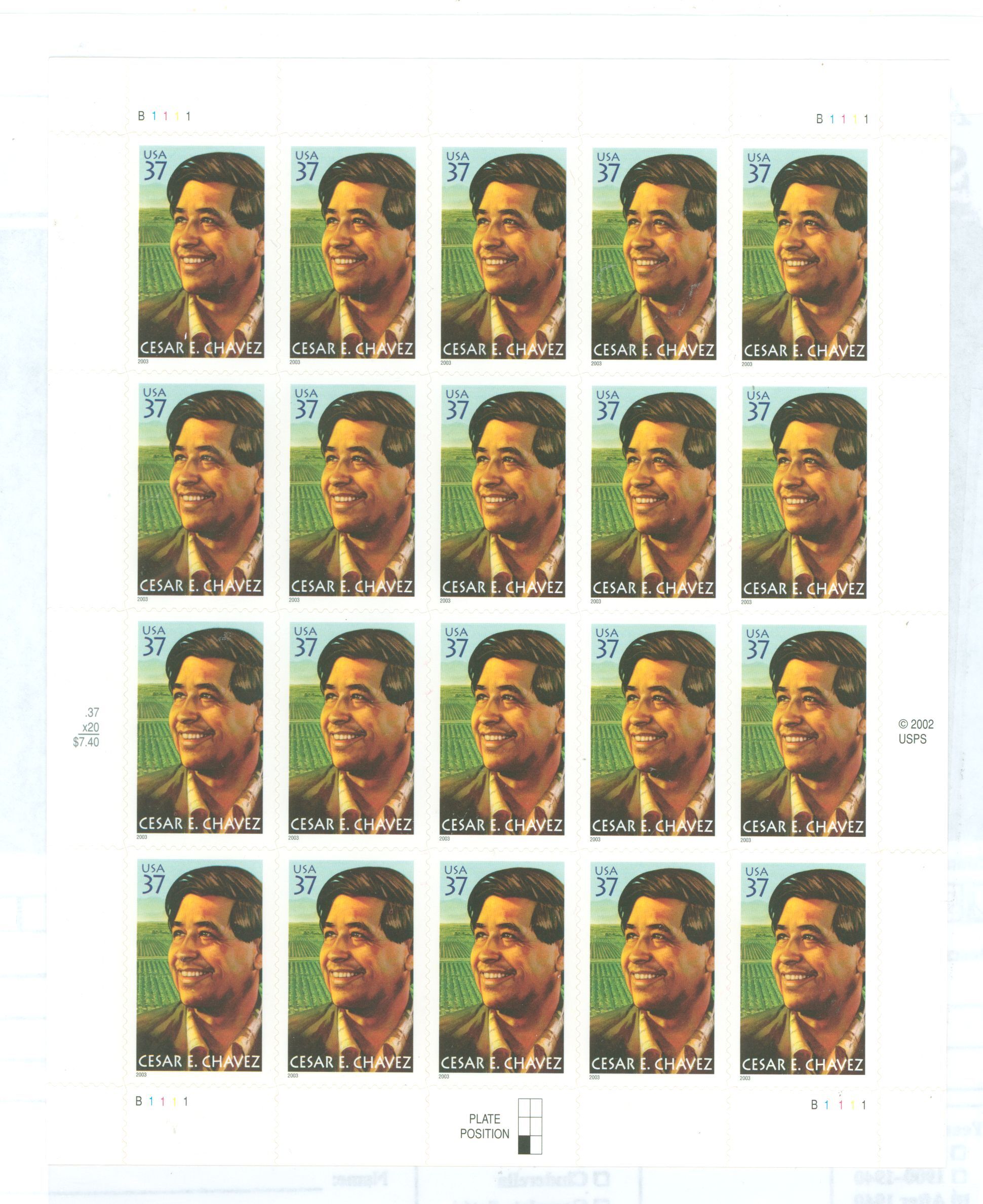 37c Cesar E. Charez, sheet of 20 stamps APS Stamp Id: 501826266 APS Seller Id: 678980 Hinge Type: NH