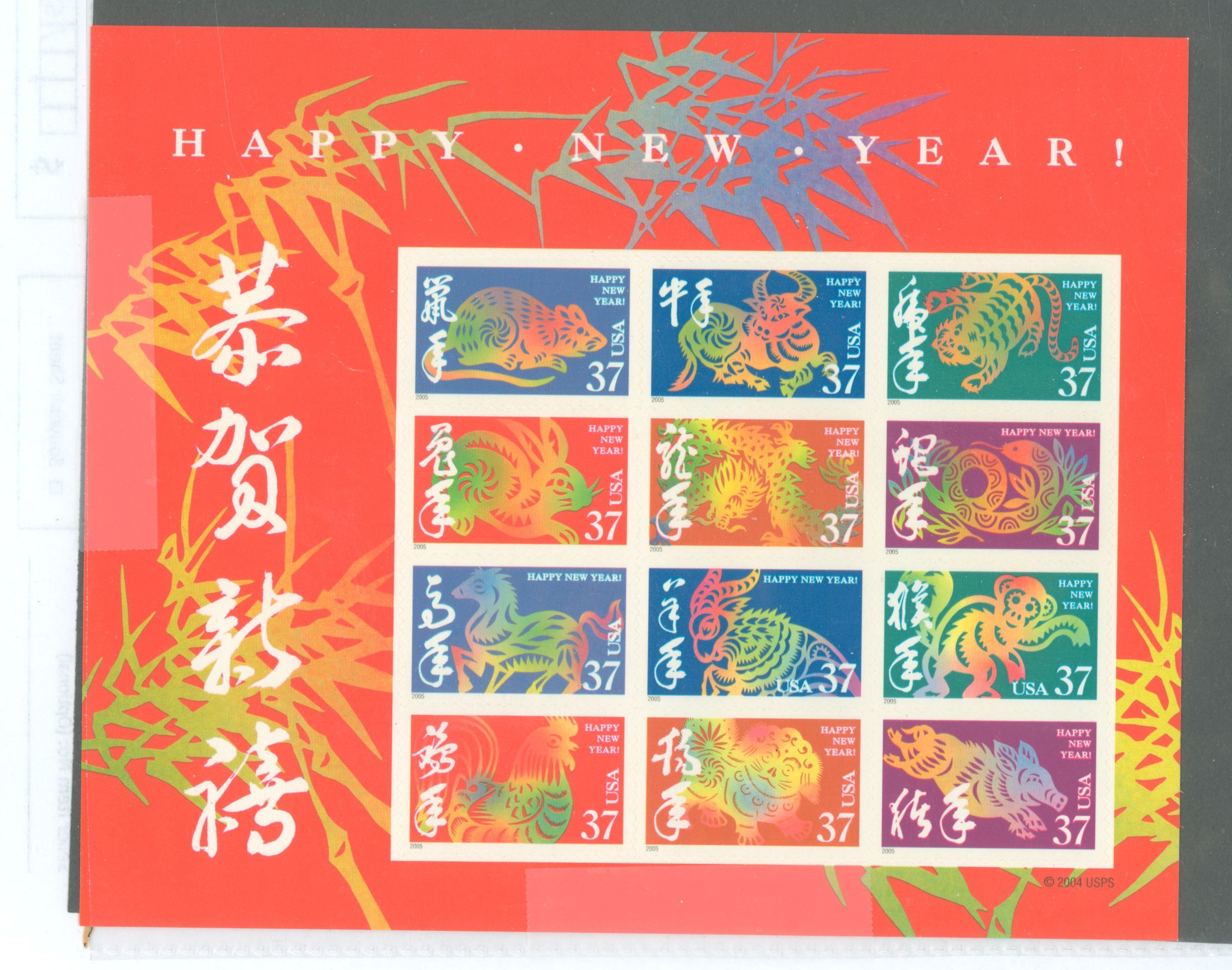 2005 Chinese New Years symbols - double sided 12 stamp pane on each side. APS Stamp Id: 501758726 APS Seller Id: 761086 Hinge Type: NH