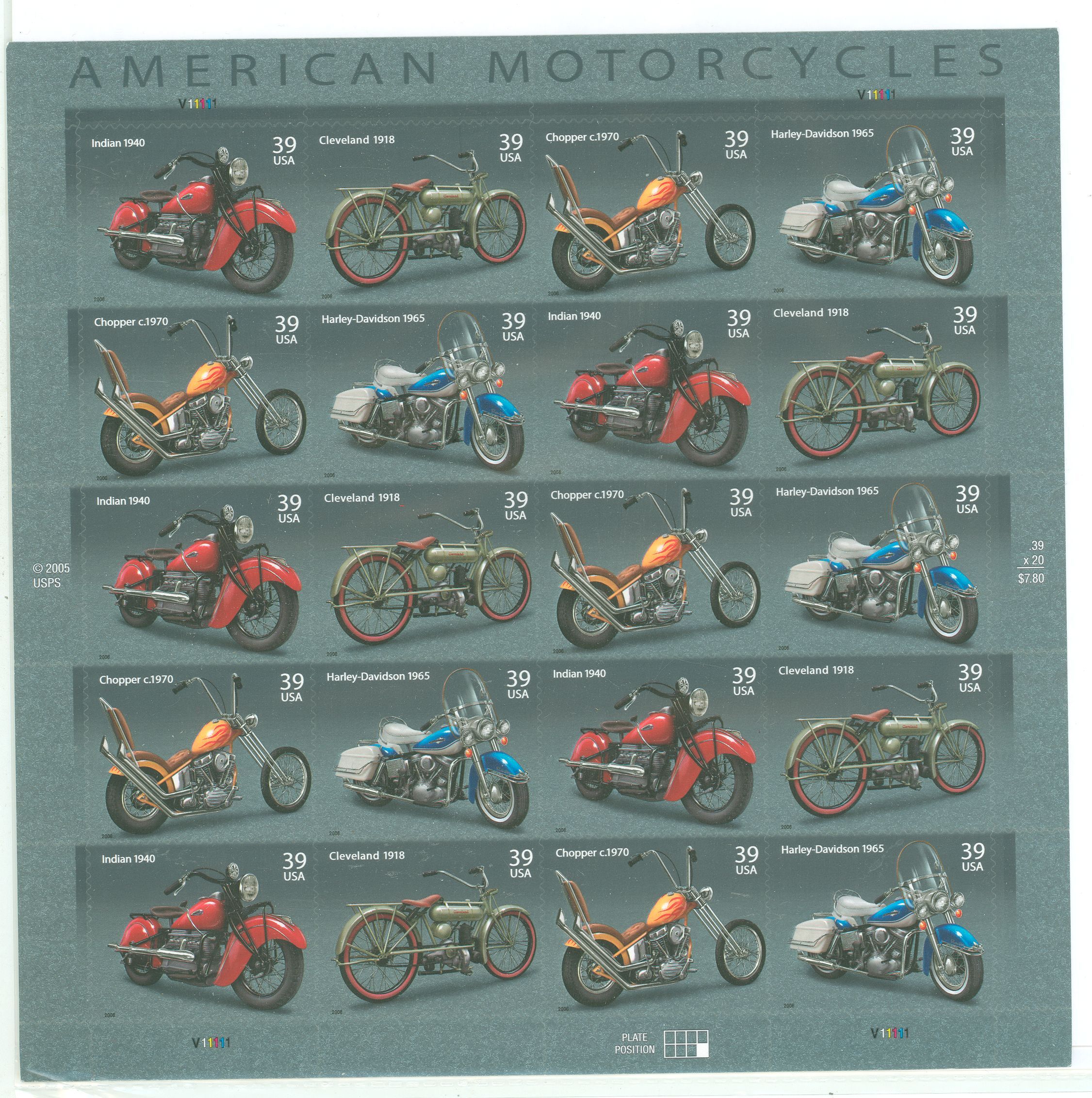 2006 Motorcycles, Harley-Davidson, complete s/a sheet of 20.APS Stamp Id: 501526061