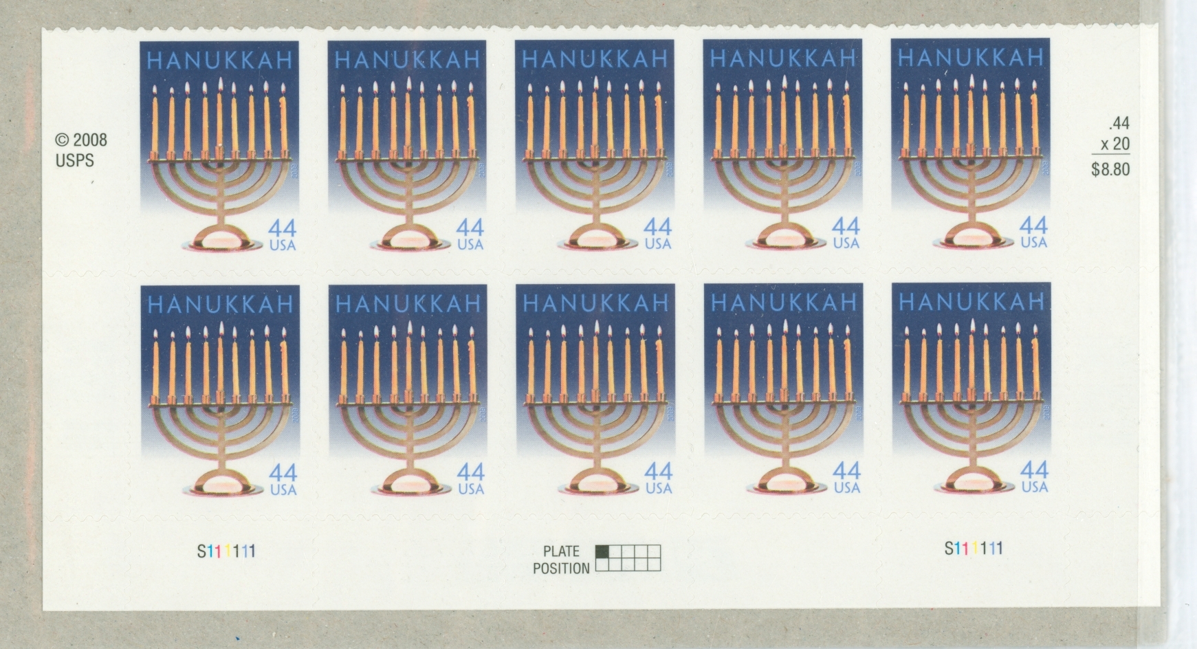 Hanukkah block of 10 in original USPS packagingAPS Stamp Id: 501542997