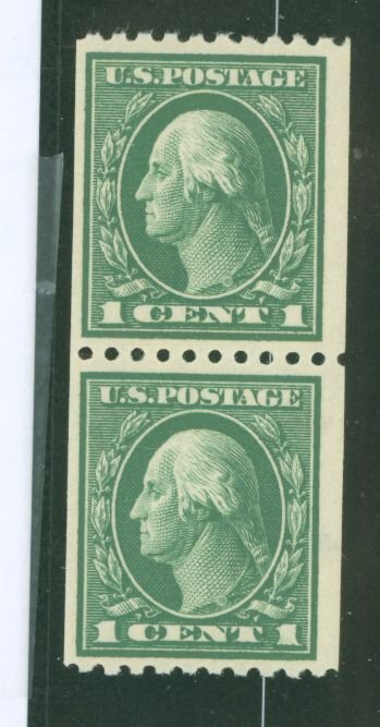 1915 Washington; pair, VF, green; perf 10 horizontally APS Stamp Id: 501866079 APS Seller Id: 580678 Hinge Type: NH