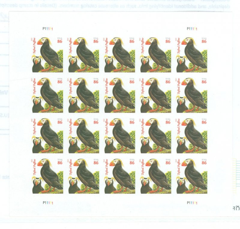 Tufted Puffins, imperforate pane of 20 APS Stamp Id: 502063143 APS Seller Id: 725162 Hinge Type: NH