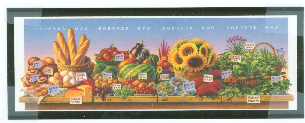 2014 Imperforate Farmer Markets, horizontal strip of 4 APS Stamp Id: 501738302 APS Seller Id: 761086 Hinge Type: NH