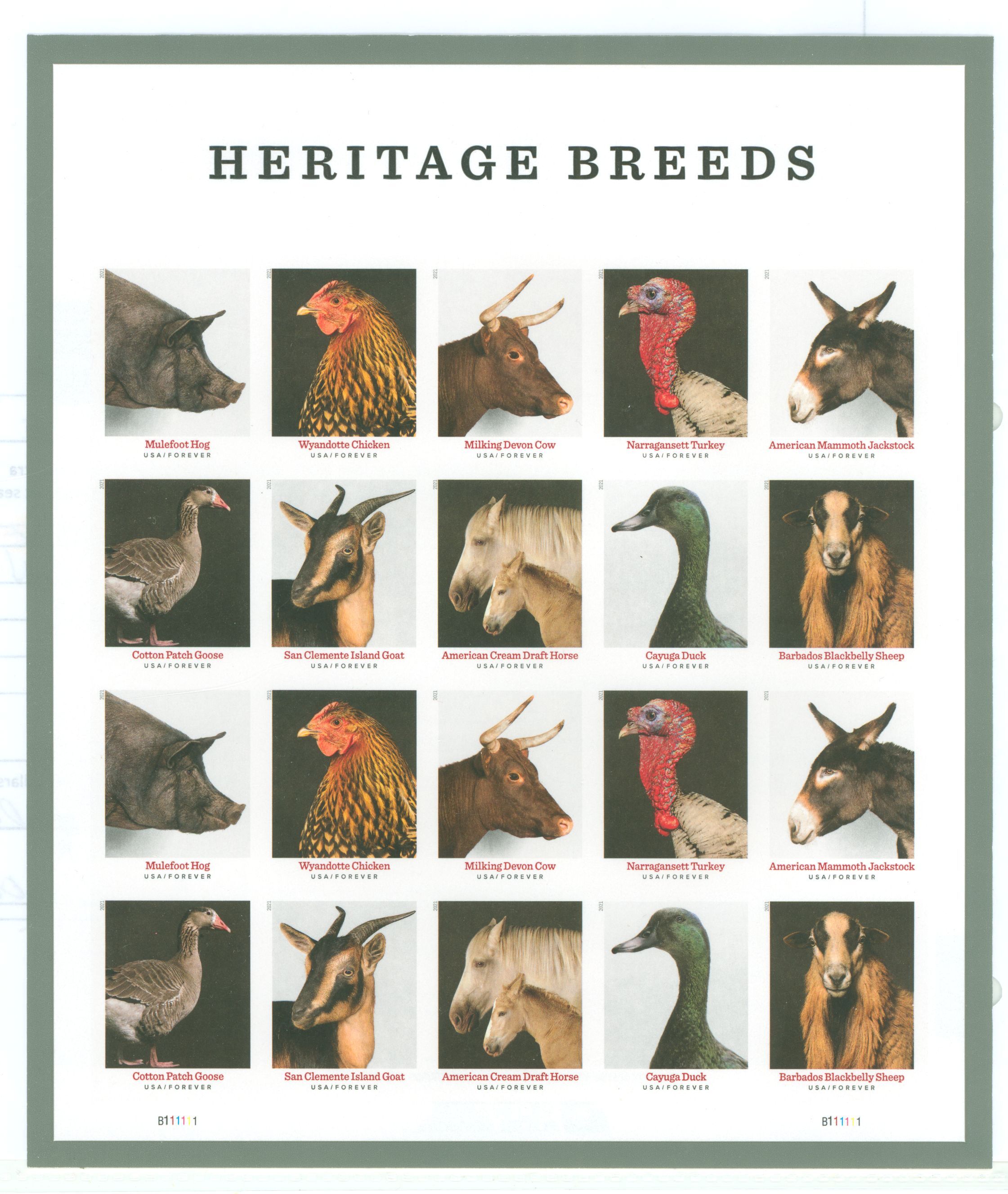 Heritage breeds, imperforate pane of 20, like new conditionAPS Stamp Id: 502060829