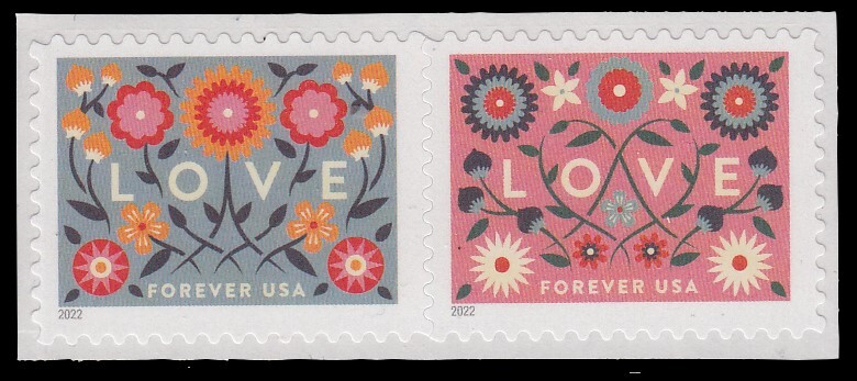 United States, Scott #5661b (5660-5661 Pair), 2022 Love issues in Mint Never Hinged condition.Scott 2023 Catalogue Value $2.50