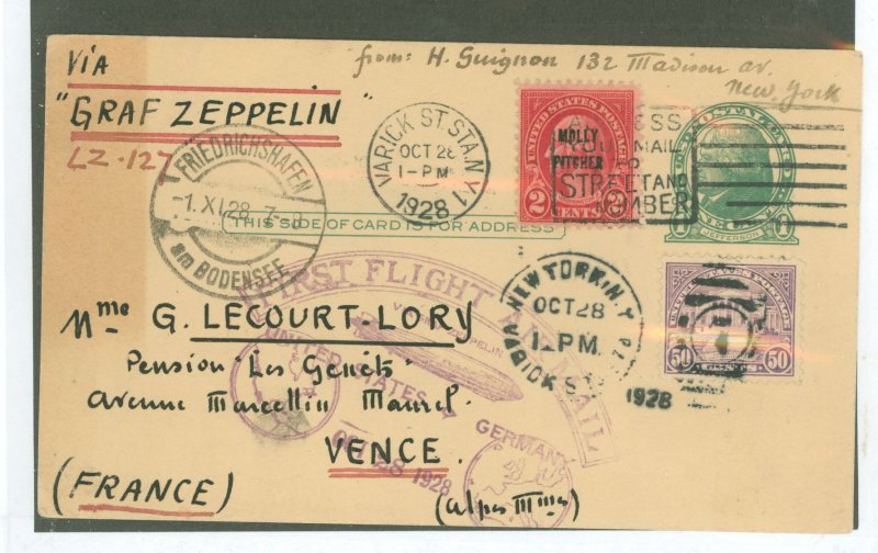 Oct. 28, 1928 Graf Zeppelin (LZ & 127) First Flight, Lakehurst to Fredrichshafen, Germany, Ultimately to Vence, France, with 53c postageAPS Stamp Id: 501727746