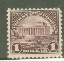 1923 $1 Lincoln Memorial Single APS Stamp Id: 501445250 APS Seller Id: 508479 Hinge Type: NH