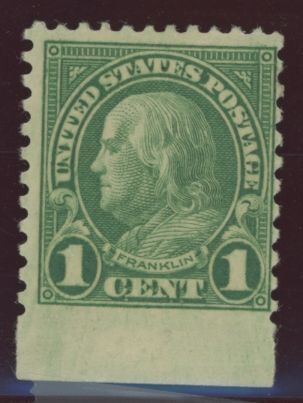 1923 Franklin, green, perf 11 x 10, thin, small creaseAPS Stamp Id: 501760208