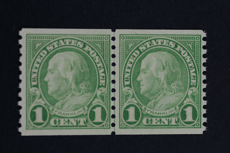 NOTE ON COIL STAMPS: I make every effort to insure that any coil stamp is genuine, and not a result of trimming or alteration, which is common among the Washingtons and Franklins. In addition to the Scott Specialized U.S. Catalog, I reference 857 USA Washington Franklins Worksheet, Henry Gitner Philatelists, "Reperfing", and crotonstamp.com: Washington-Franklin Coils 101. These sites all offer valuable information on how high and wide coil stamps should be, tips on identifying faked perforations, and other guidelines to avoid forgeries. You should study these sites when buying or selling coils.