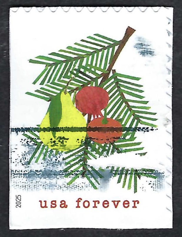 United States #6035 Forever Holiday Cheer - Fruits (2025). Used. On paper.