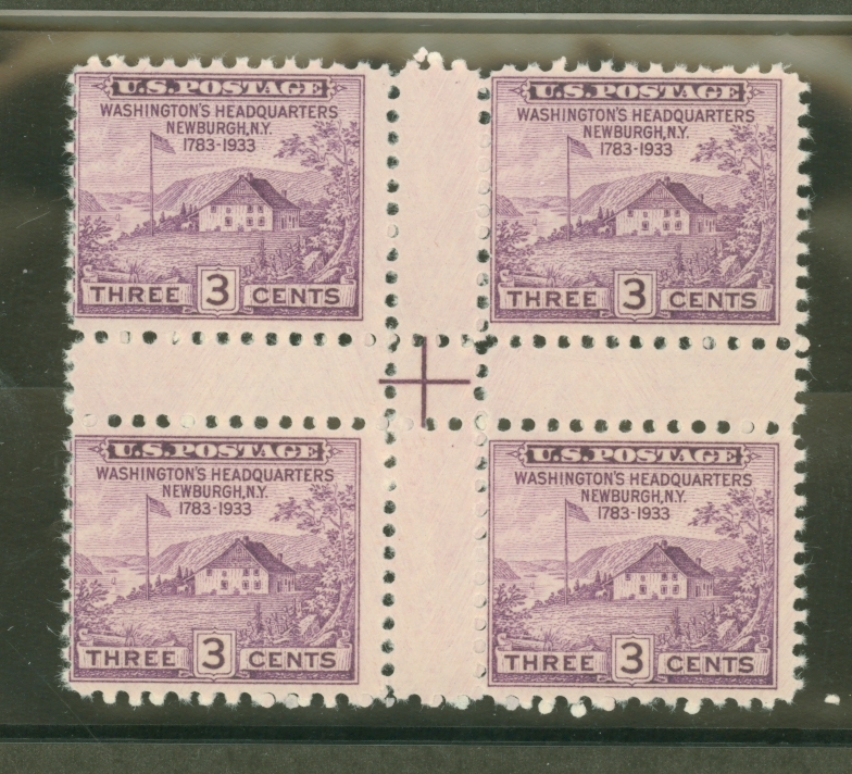 1935 Washington's Headquarters, center block with crossed gutters and dashes, back has many "unpunched" perf holes APS Stamp Id: 501708767 APS Seller Id: 606810 Hinge Type: NH