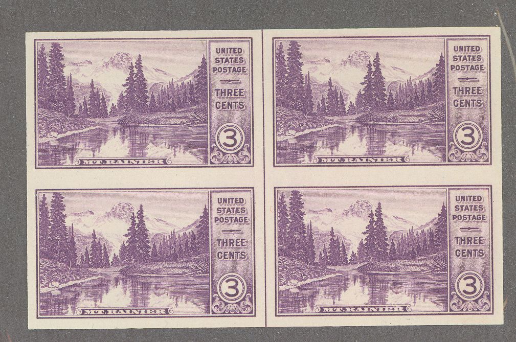 1935 Mt. Rainier NP. Farley special printing issue block of 4 with vertical line. APS Stamp Id: 501926220 APS Seller Id: 612224 Hinge Type: NH Other Catalog Name: Brookman