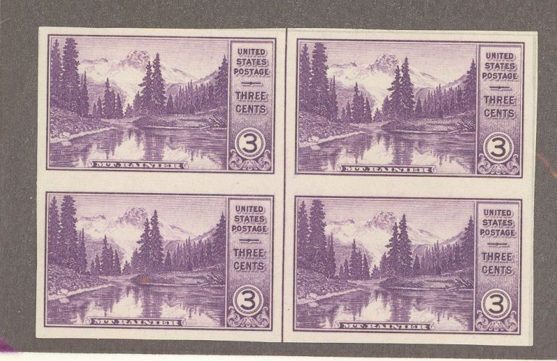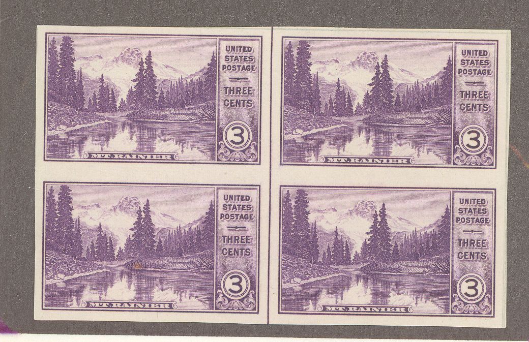 1935 Mt. Rainier NP. Farley special printing issue block of 4 with vertical line. APS Stamp Id: 501926221 APS Seller Id: 612224 Hinge Type: NH Other Catalog Name: Brookman