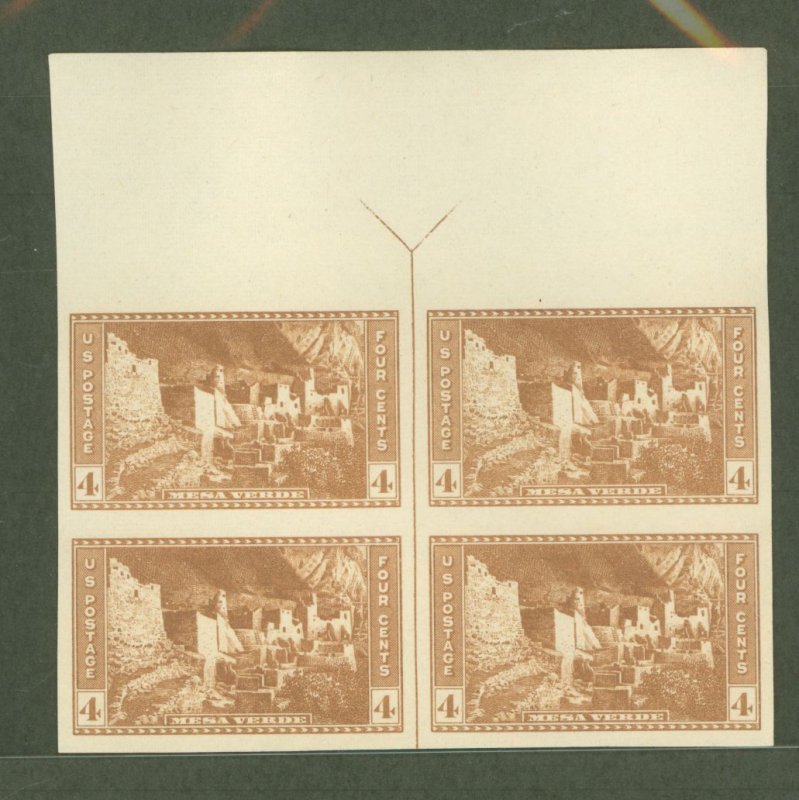 4c Mesa Verde National Park, top margin block of four, arrow and guideline, no gum as issued APS Stamp Id: 502069849 APS Seller Id: 619483 Hinge Type: NG