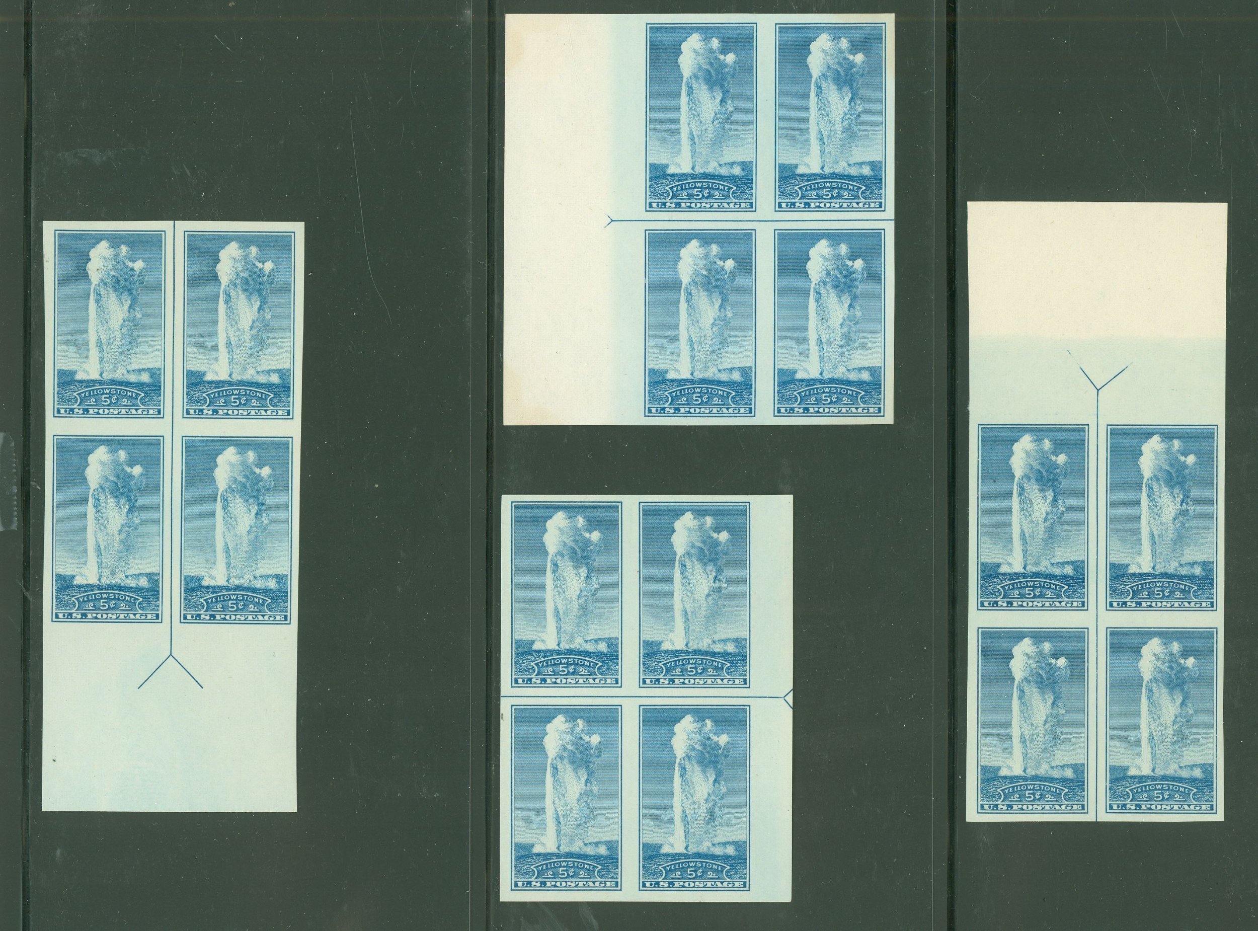 Old Faithful, set of arrow blocks, MNH, no gum as issued, imperfAPS Stamp Id: 501975270