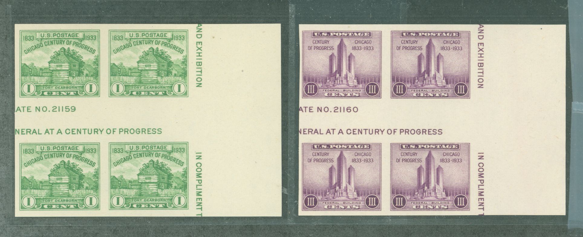 1935 Farley Special Printing; horizontal gutter block of 4, margin, no gum as issued, small creases. APS Stamp Id: 501786192 APS Seller Id: 756981 Hinge Type: HR