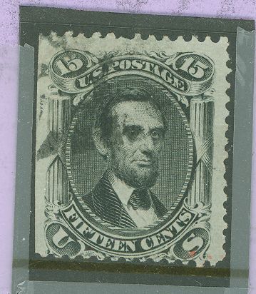 1866 15c President Abraham Lincoln. Straight edge at left. APS Stamp Id: 501909824 APS Seller Id: 508479 Hinge Type: NG
