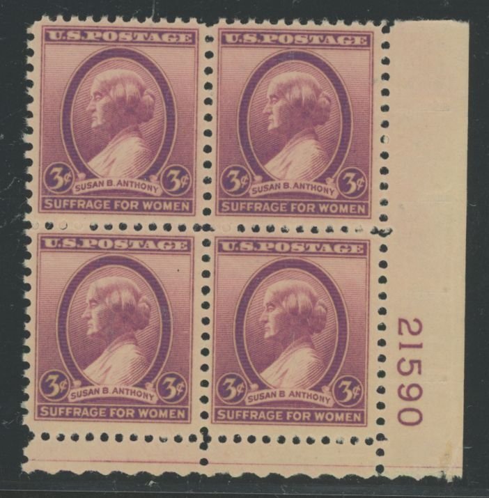 1936 Susan B. Anthony Plateblock, Period missing after B, 21590 LR, Gum creasesAPS Stamp Id: 501802617
