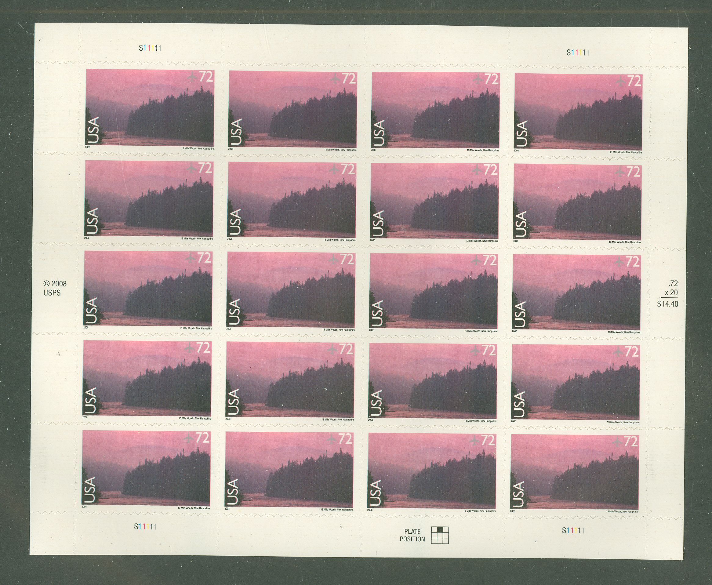 Pane of 20, 13 mile woods, MNH, 72c at face valueAPS Stamp Id: 501975559