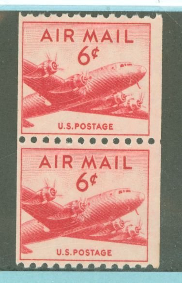 1949 6c DC-4 Skymaster vertical coil pair APS Stamp Id: 501791548 APS Seller Id: 508479 Hinge Type: NH