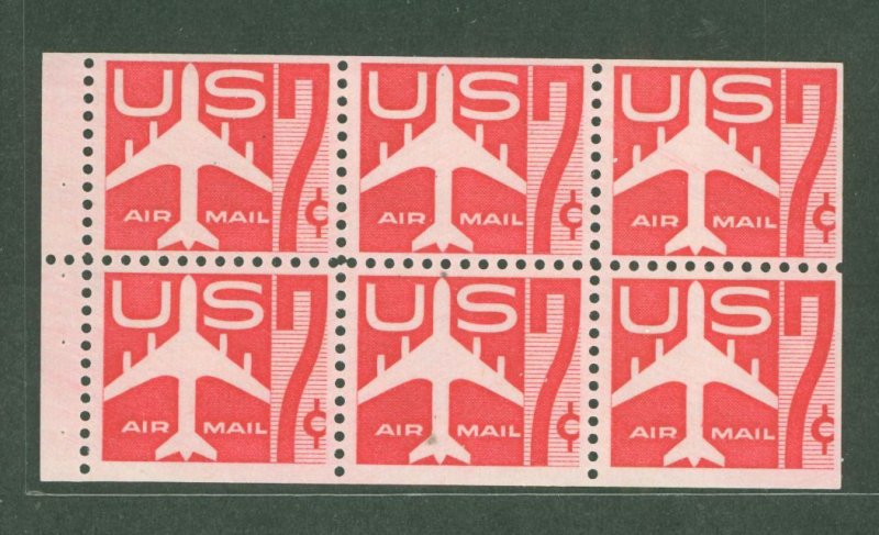 1960 7c Airmail booklet pane, carmine, pane of 6, OG, VFAPS Stamp Id: 501869738