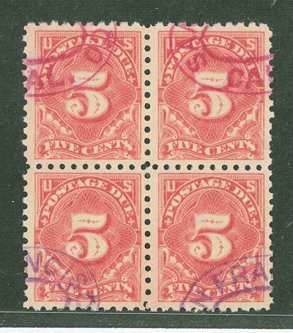 1914 Postage due block used with purple cancelAPS Stamp Id: 501794081