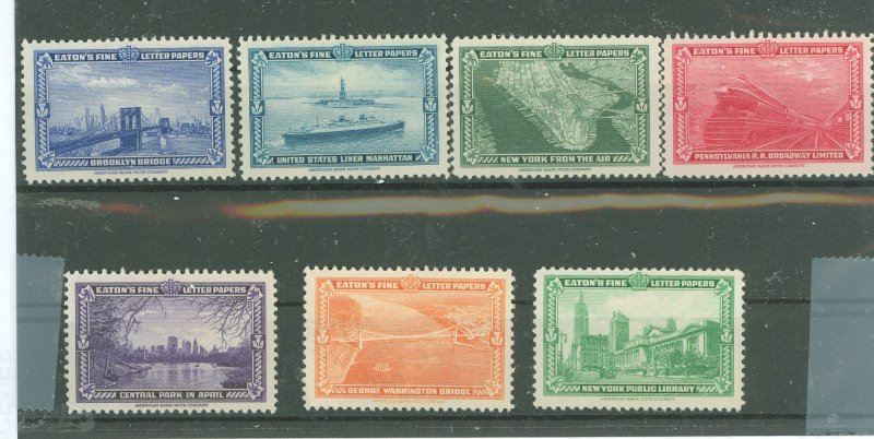 1939 set of 7 MNH Eaton fine letter papers labels; Iconic New York City scenes. APS Stamp Id: 501952012 APS Seller Id: 612224 Hinge Type: NH