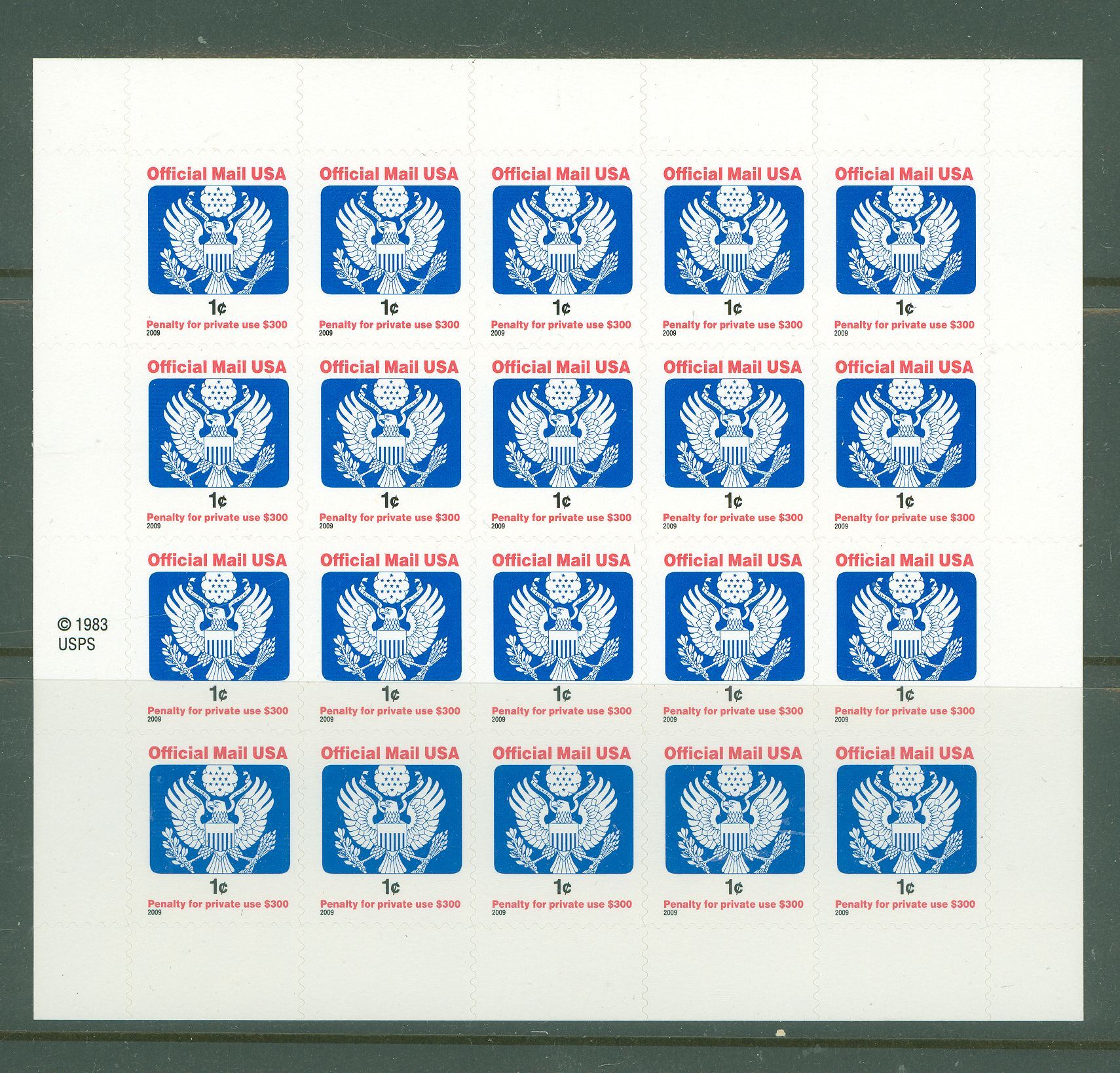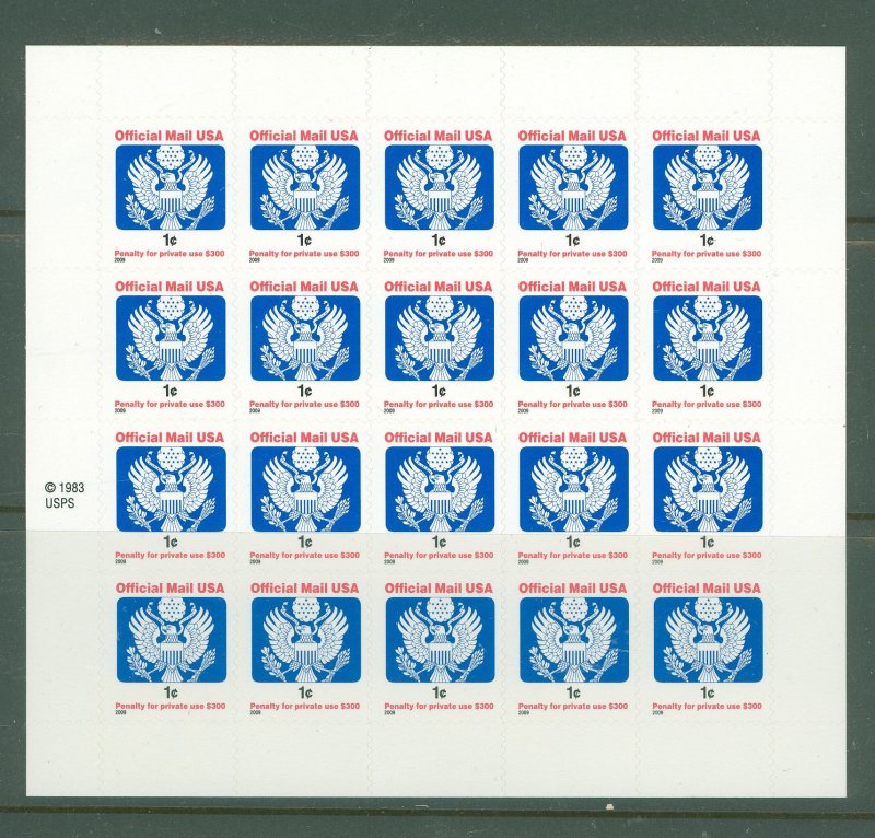 2009 1c Eagle official mail sheet. Self AdhesiveAPS Stamp Id: 501803257