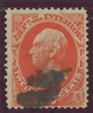 1873 used O20 12c department of interior single on hard thin paper APS Stamp Id: 501777005 APS Seller Id: 508479 Hinge Type: NG