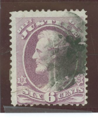 1873 Official - Justice dept, perf 12, purple; tear covered by hinge. APS Stamp Id: 501721363 APS Seller Id: 580678 Hinge Type: Not Specified