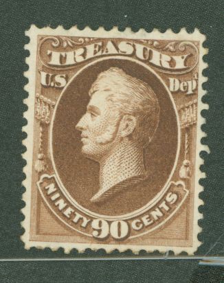 1873 Official stamp; 90c brown, original gum is disturbed, well centered. APS Stamp Id: 501729828 APS Seller Id: 575340 Hinge Type: HR