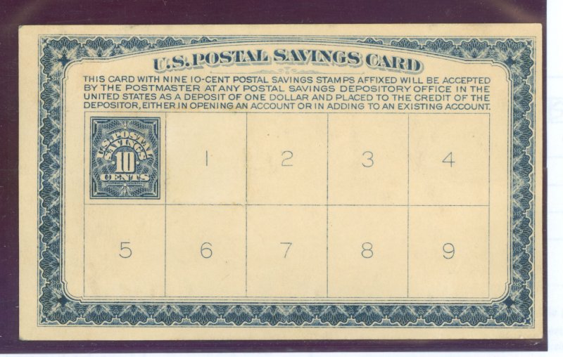 10c Postal Savings issue, deep blue imprinted on a deposit card, no gum as issued, no faults. APS Stamp Id: 501732512 APS Seller Id: 534450 Hinge Type: NG