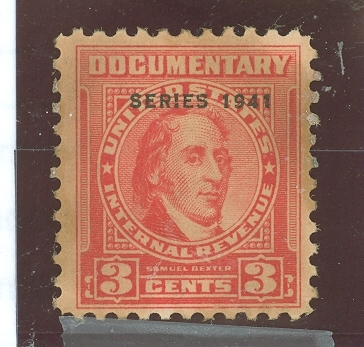 1941 Federal Revenue; perf 11, carmine, thin, regummed. APS Stamp Id: 501696240 APS Seller Id: 580678 Hinge Type: NH