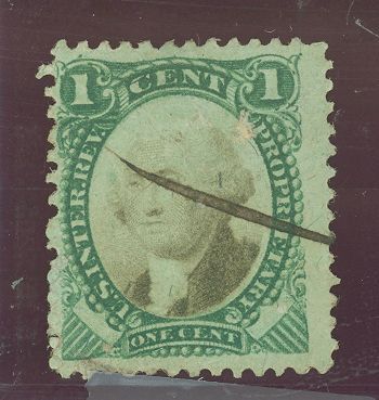 1871 Federal Revenue - Proprietary , perf 12, green & black, green paper, crease APS Stamp Id: 501652640 APS Seller Id: 580678 Hinge Type: Not Specified